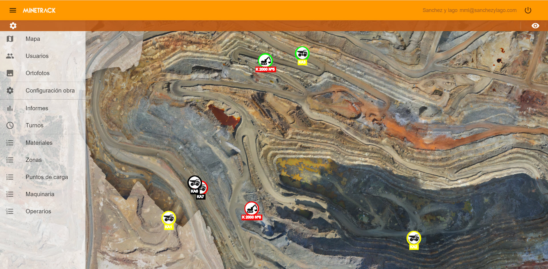 The first of these is MINETRACK, our fleet management system for mining and civil works, which allows our clients Sánchez y Lago and Atalaya Mining to have detailed monitoring of the operations and tasks that the machinery is carrying out.