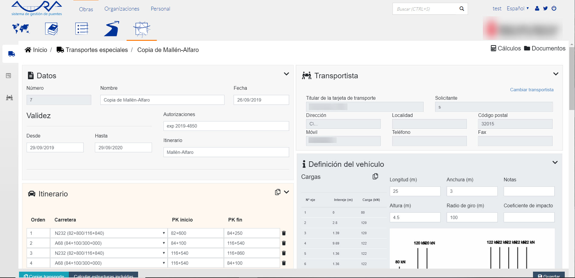The Aura system, developed in conjunction with Fhecor Ingenieros, incorporates an automated system for generating reports for special transports vehicles passes. Aura is an advanced platform for the management of structures, which incorporates to the current functionalities (inventory, inspection, cost control, integration with BIM methodology, etc.) the mentioned system for generating reports for the passage of special transports vehicles. This system will become operational in the coming weeks in the Community of Navarra in Spain. |