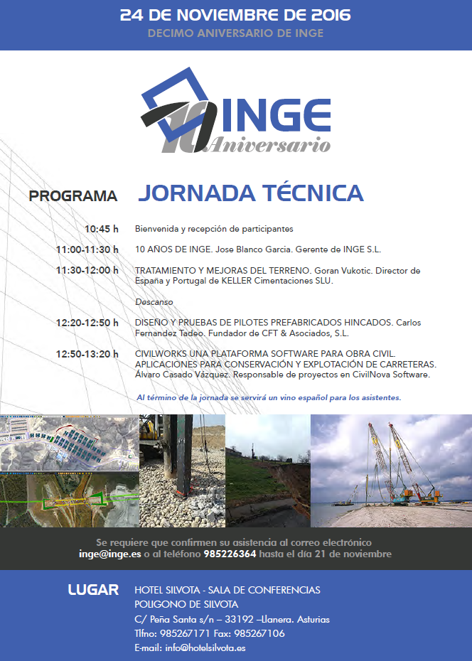 El próximo 24 de Noviembre CivilNova Software estará presente en el décimo aniversario de nuestro Partner INGE SL. Con motivo de este aniversario INGE SL organiza una jornada en la que participarán varios colaboradores y socios.